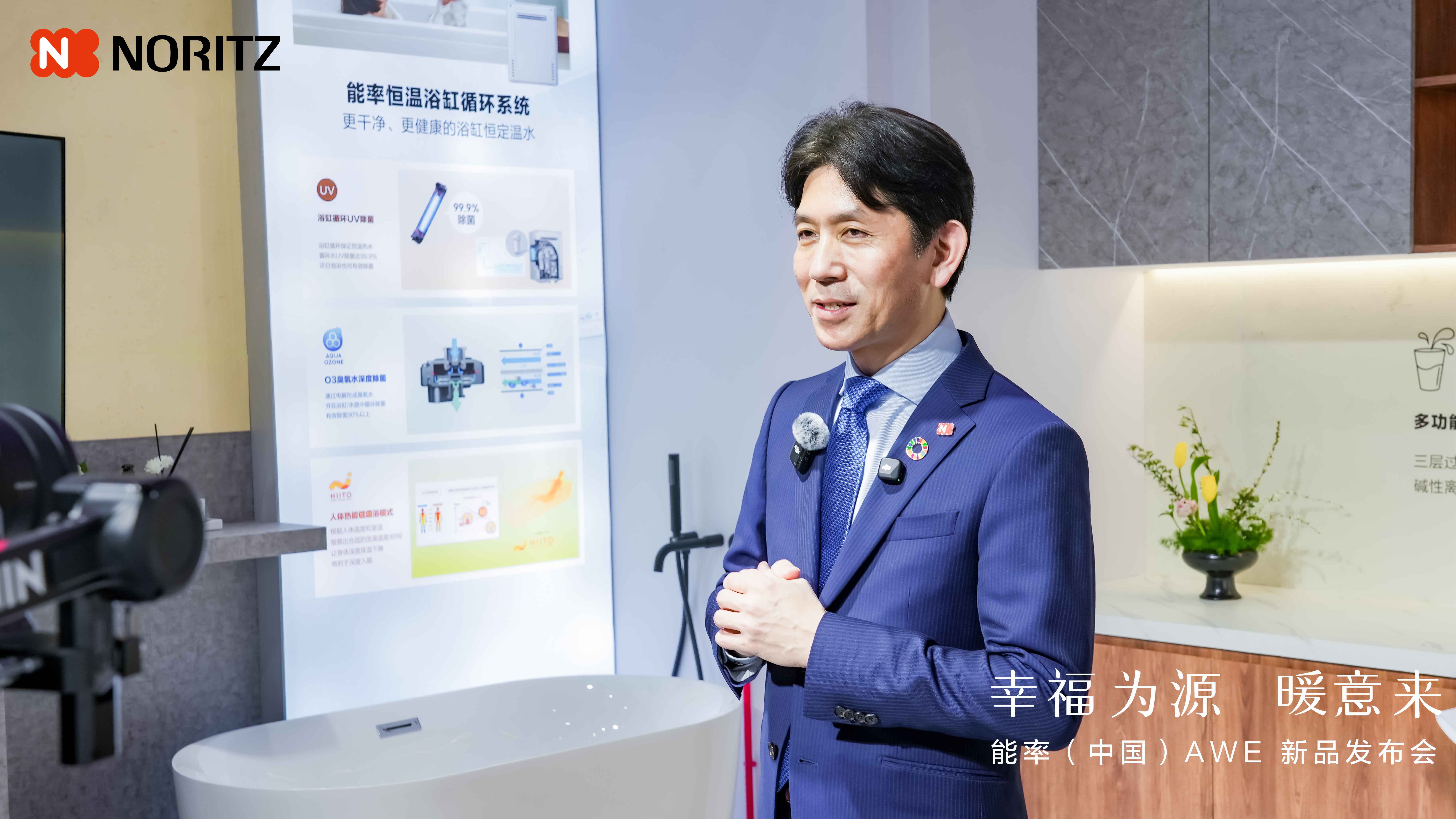 在“幸福為源 暖意來(lái)”能率NORITZ新品發(fā)布會(huì)上,能率(中國(guó))投資有限公司董事總經(jīng)理森榮介發(fā)表了重要講話。他表示:“從安全、安心到舒適,能率對(duì)品質(zhì)的追求融入到了每一個(gè)細(xì)節(jié)之中?!?/strong>同時(shí),他也介紹了能率NORITZ在本次展會(huì)上帶來(lái)的全新產(chǎn)品陣容,這些產(chǎn)品不僅體現(xiàn)了能率NORITZ對(duì)技術(shù)創(chuàng)新的執(zhí)著追求,更展現(xiàn)了其對(duì)消費(fèi)者需求的深刻洞察。