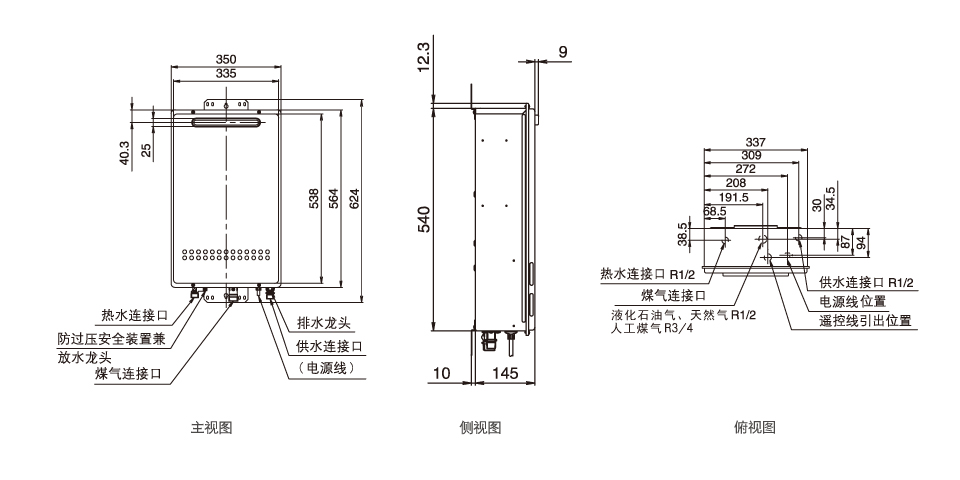 外型尺寸(mm):高564×寬350×深145