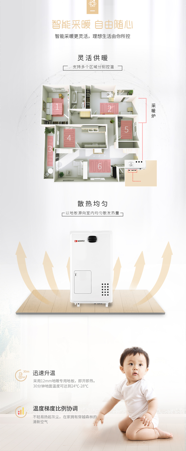 • 雙溫度立體供暖,定制采暖時(shí)刻,七檔溫度隨心選
