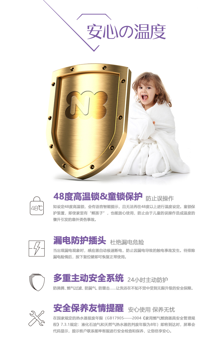 安全裝置:熄火保護(hù)、過壓保護(hù)、可復(fù)式空燒保護(hù)、水及氣路過濾、熔斷式過熱保護(hù)、LED數(shù)碼故障顯示、斷水保護(hù)、防雷擊保護(hù)、雙重燃?xì)怆姶砰y等等安全保護(hù)裝置。