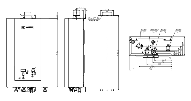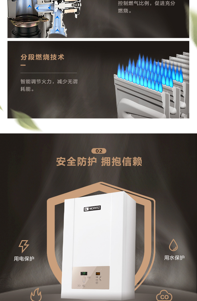 安全裝置:熄火保護(hù)、過壓保護(hù)、可復(fù)式空燒保護(hù)、水及氣路過濾、熔斷式過熱保護(hù)、LED數(shù)碼故障顯示、斷水保護(hù)、防雷擊保護(hù)、雙重燃?xì)怆姶砰y等安全保護(hù)裝置