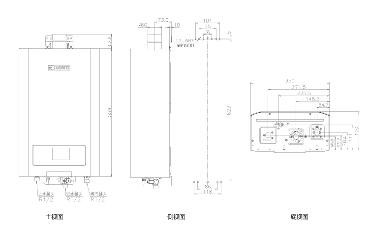 外型尺寸(mm):高559×寬350×深170