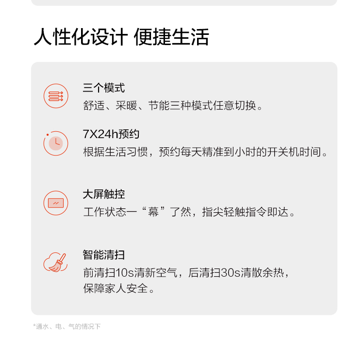 • 貼心智能設(shè)計 聚暖輕松無憂