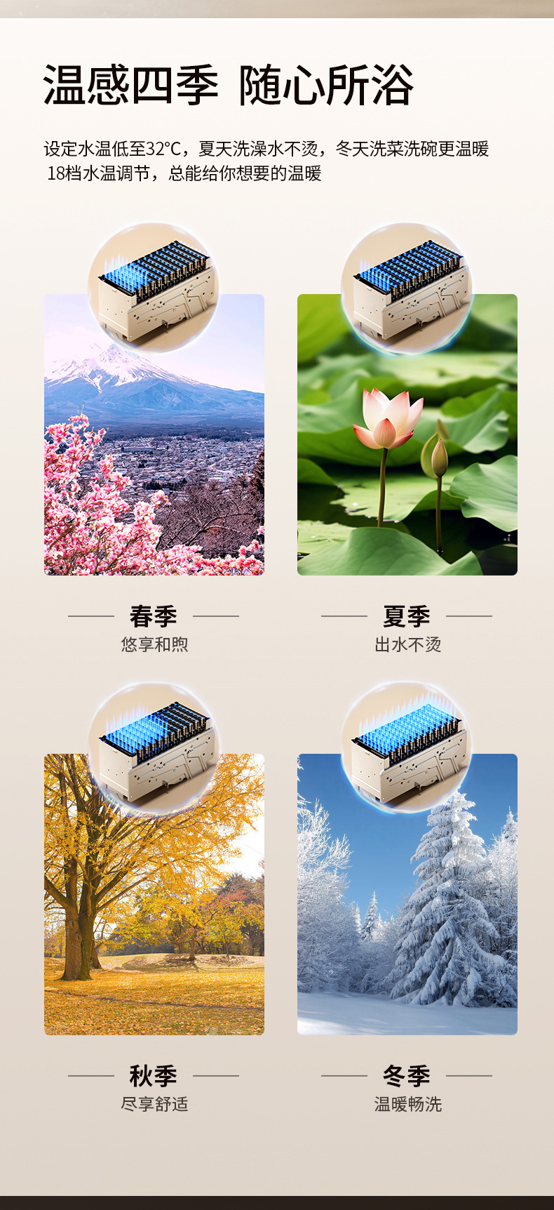 - 32℃微暖模式,18檔水溫調節(jié)
