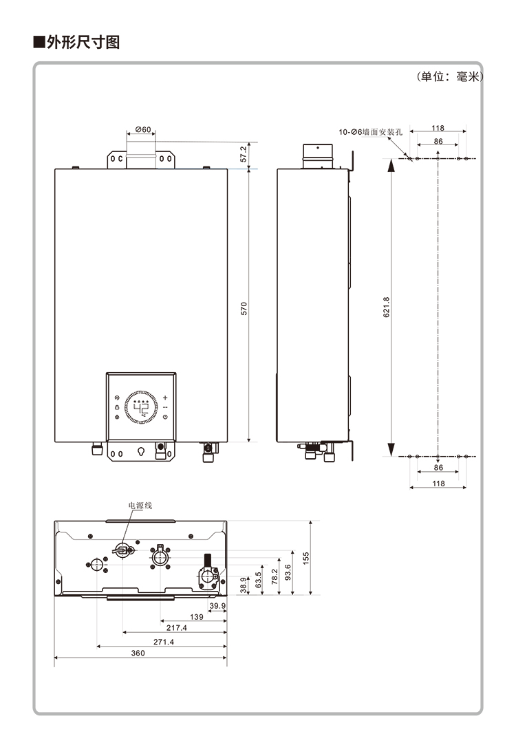 外型尺寸(mm):高570×寬360×深155