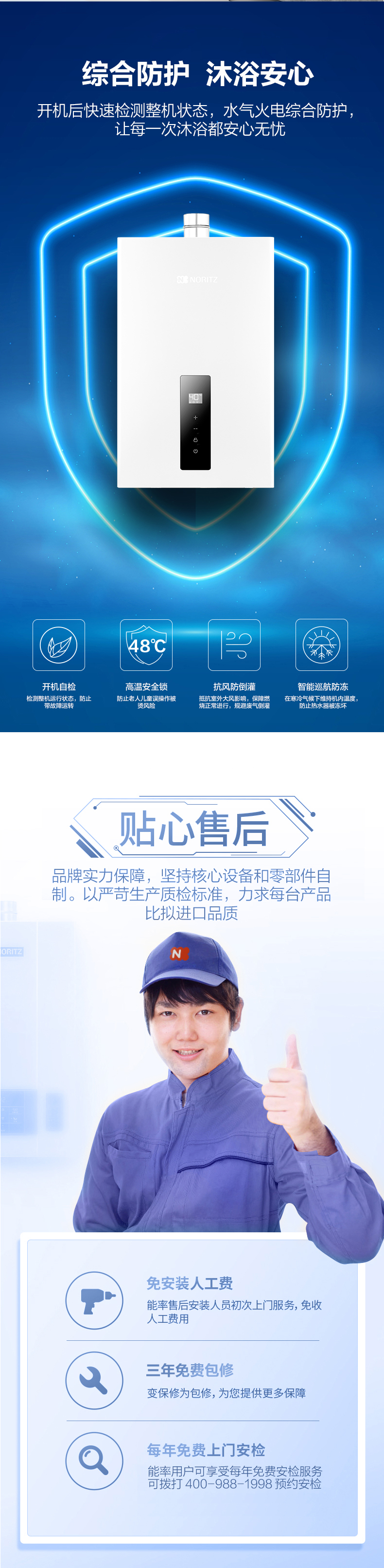 安全裝置:*熄火保護(hù)、*過(guò)壓保護(hù)、*可復(fù)式空燒保護(hù)、*水、氣路過(guò)濾、*熔斷式、過(guò)熱保護(hù)、*LED數(shù)碼故障顯?、*斷水保護(hù)、*防雷擊保護(hù)、*雙重燃、氣電磁閥等等安全保護(hù)裝置