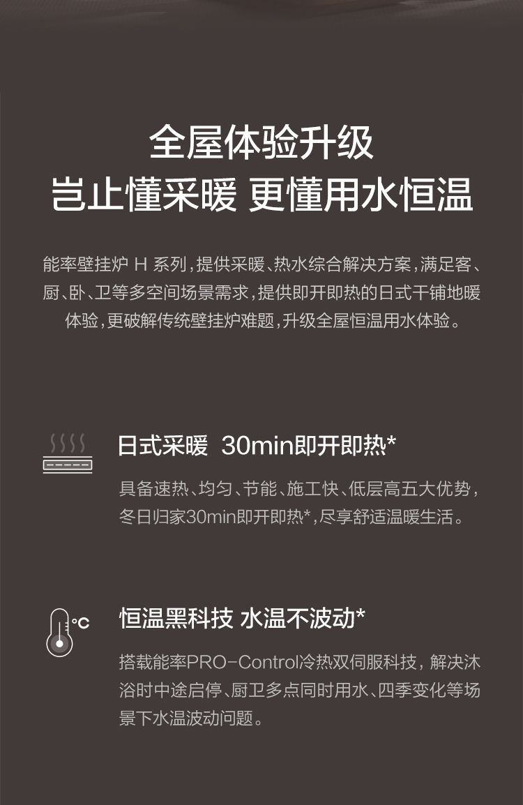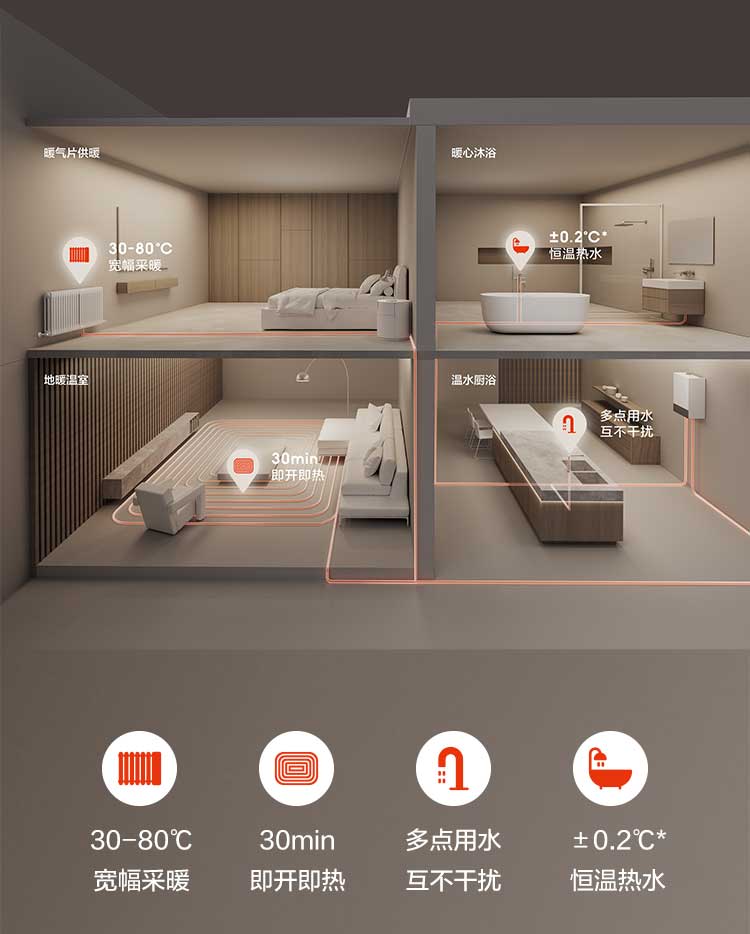 • 30-80度寬幅采暖,多場(chǎng)景采暖無憂
