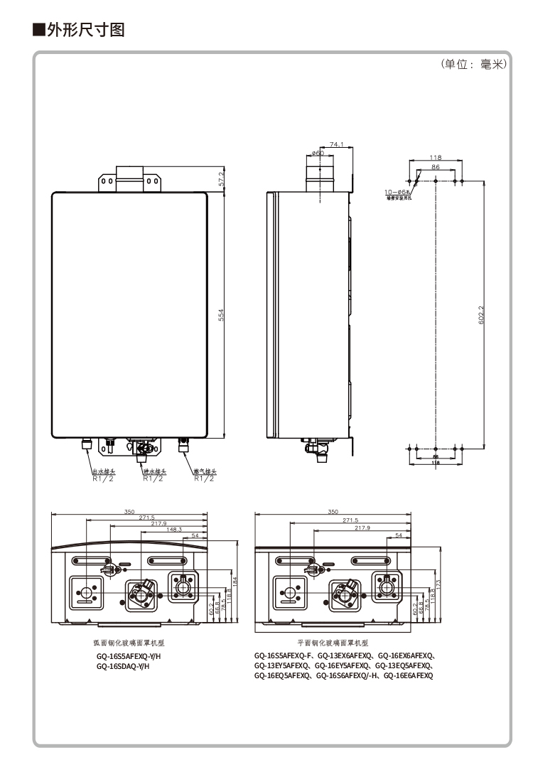 外型尺寸(mm):高554×寬350×深170