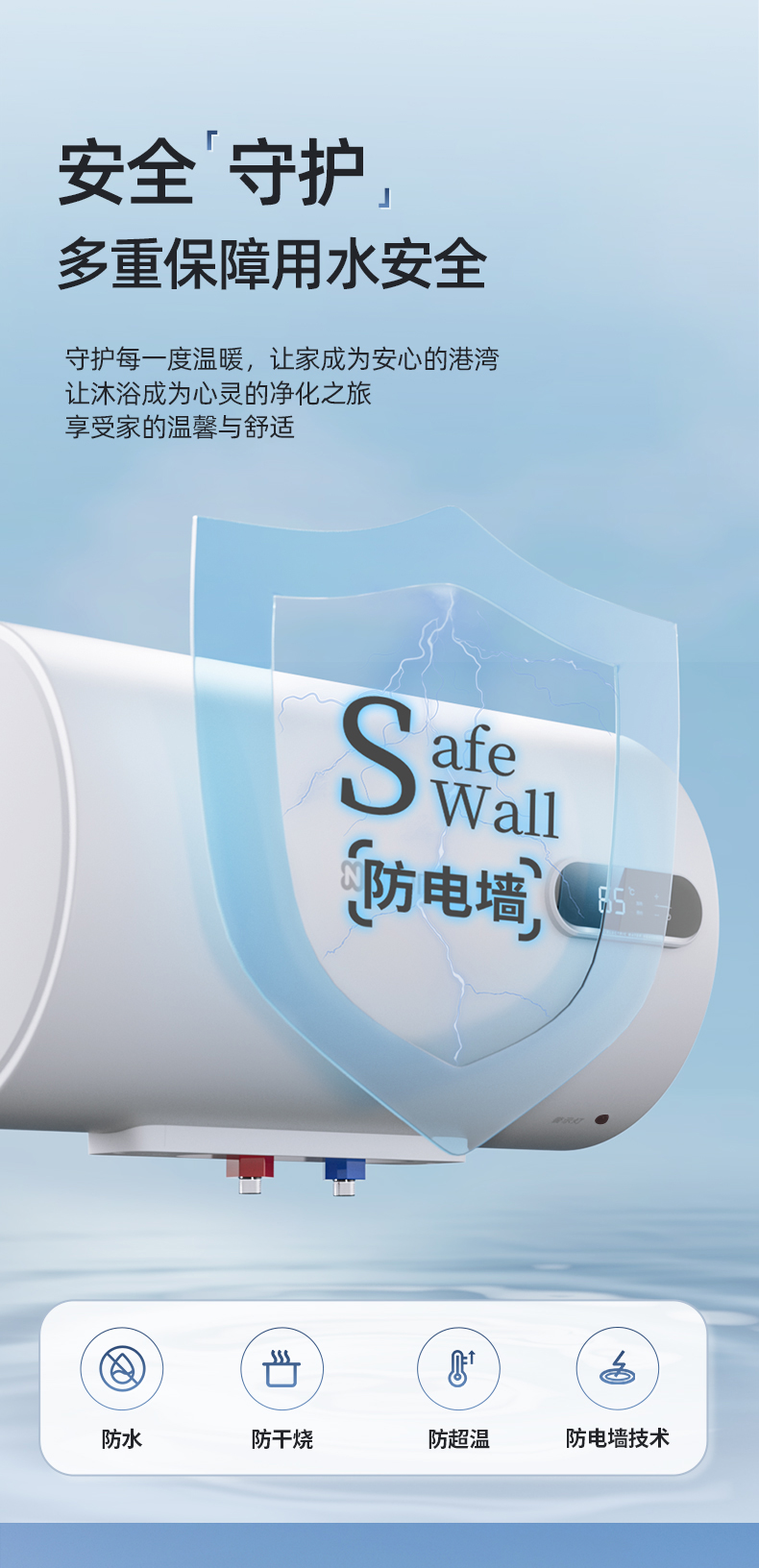 安全防護(hù)裝置:超溫保護(hù)、水壓過壓保護(hù)、防熱水倒流、防凍保護(hù)等