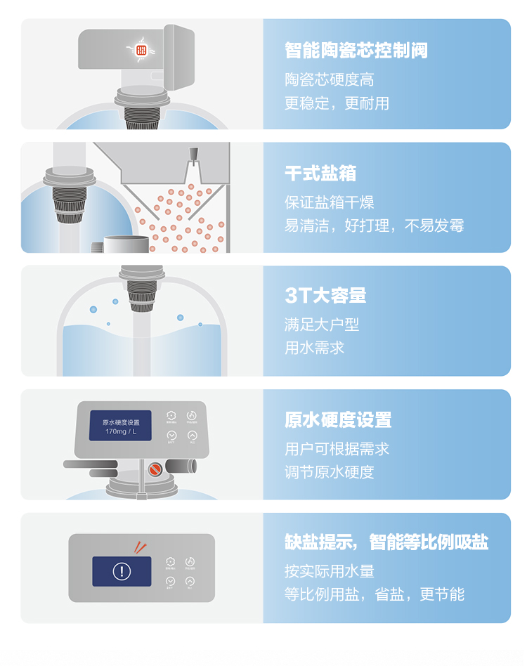 • 逆流再生技術,再生軟化效果好