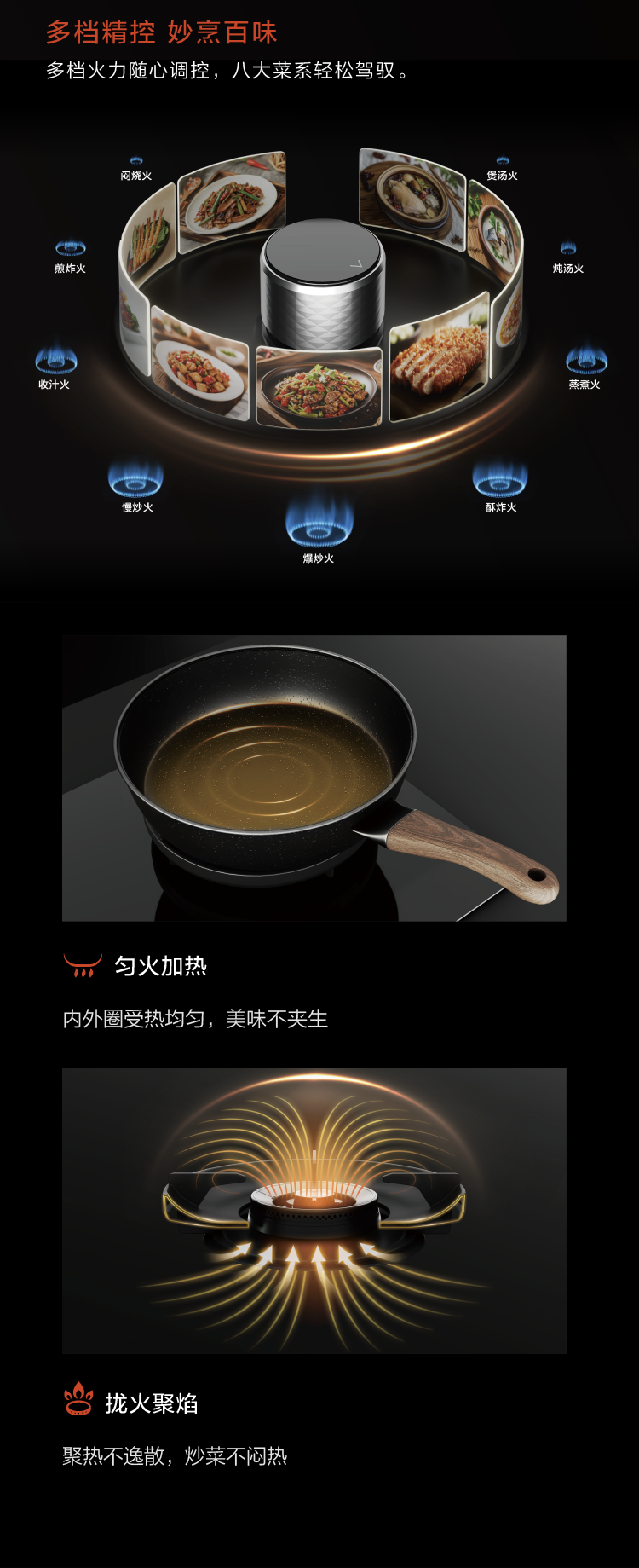 • 勻火加熱,攏火聚焰