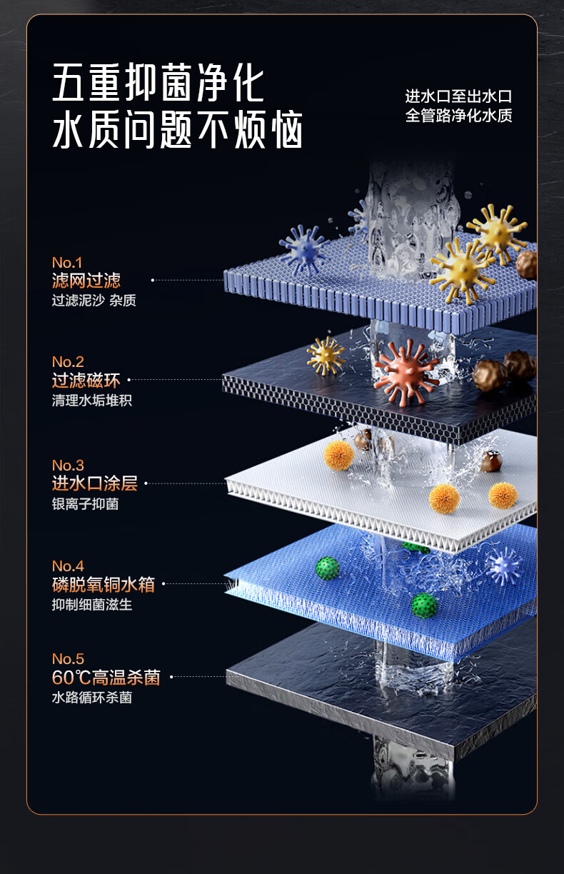 • 進(jìn)水口銀離子涂層強(qiáng)效抑菌