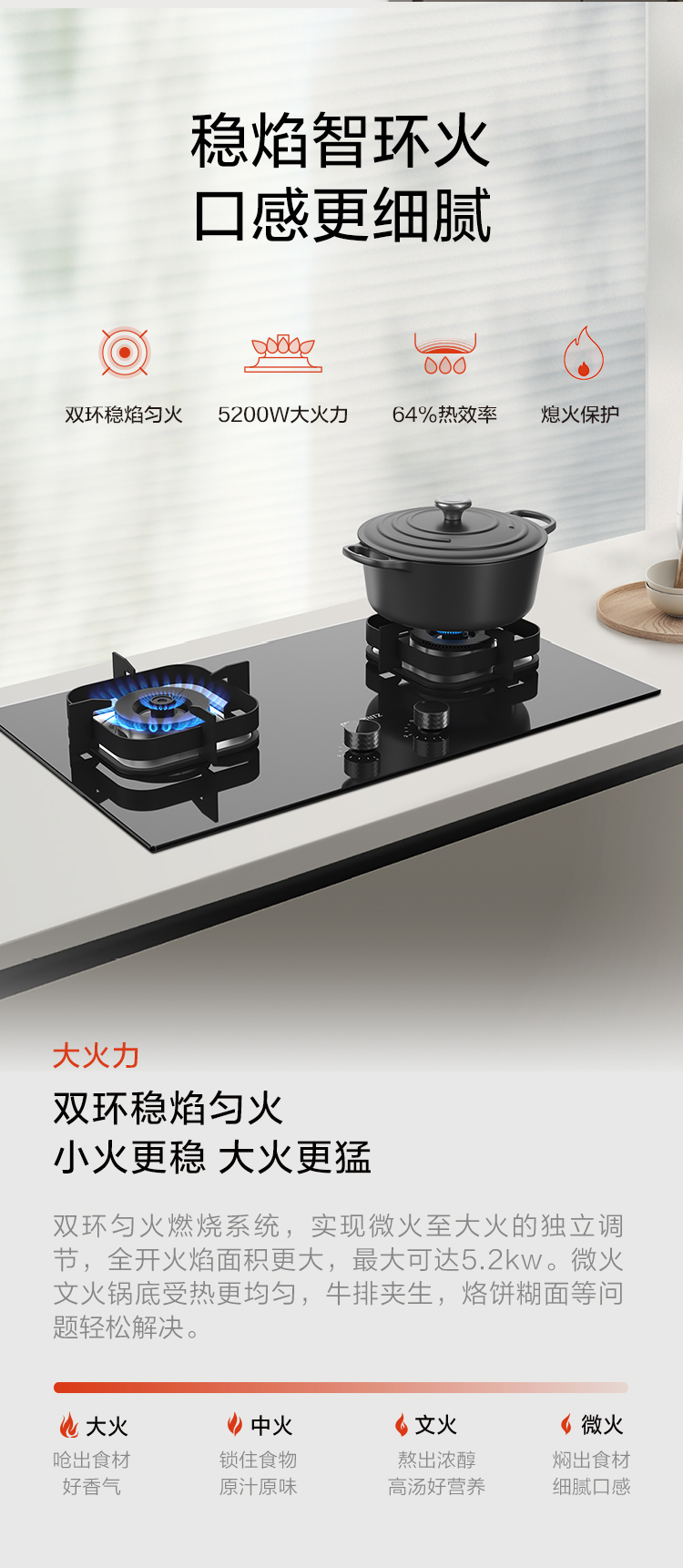 • 5.2KW雙環(huán)勻火燃燒系統(tǒng)
